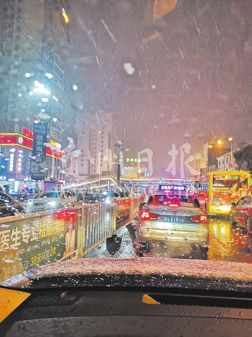 1月8日晚,随城普降瑞雪。(随州日报全媒记者罗毅摄)