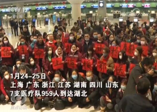 1月24-25日,上海、广东、浙江、江苏、湖南、四川、山东7支医疗队959人到达。