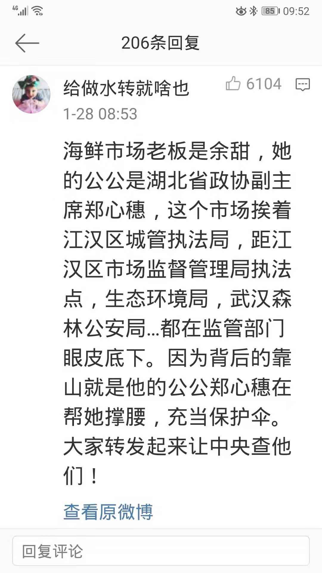 新浪微博网传“武汉华南海鲜市场老板是余甜,她的公公是湖北省政协副主席郑心穗”的消息。经核实,湖北省政协原副主席郑心穗没有儿子,此消息不属实。