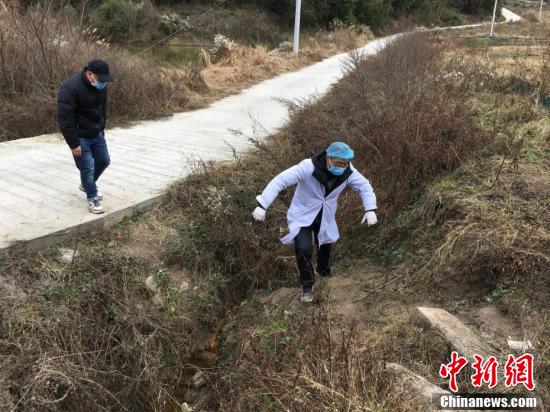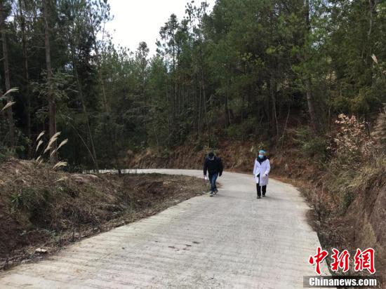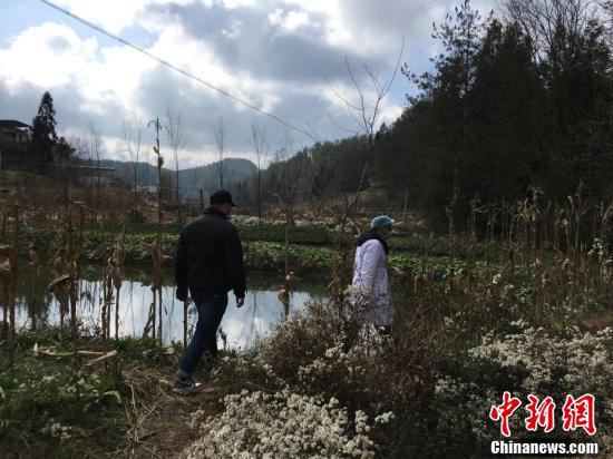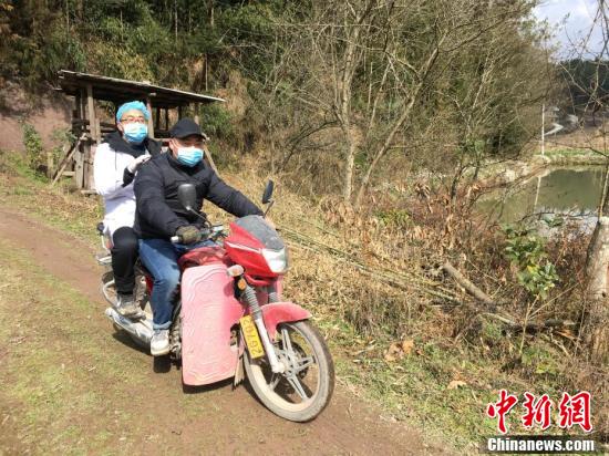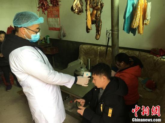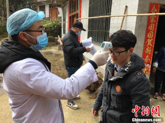 1月29日,湖北省利川市白竹坝村村委委员何旭东和村医向学军走村入户,为从武汉回乡过节、探亲或者在武汉旅游、居住过的人员进行体温检测和登记。白竹坝村地处大山深处,村民居住分散,春节期间又有大量外出务工人员返乡。新型冠状病毒感染的肺炎疫情爆发以来,村里采取交通管制、街道消毒、车载喇叭宣传等举措,开展疫情防控工作。村委会工作人员和村医每天翻山越岭,通过步行加摩托车方式入村走访,确保每一人排查到位。 马芙蓉 摄