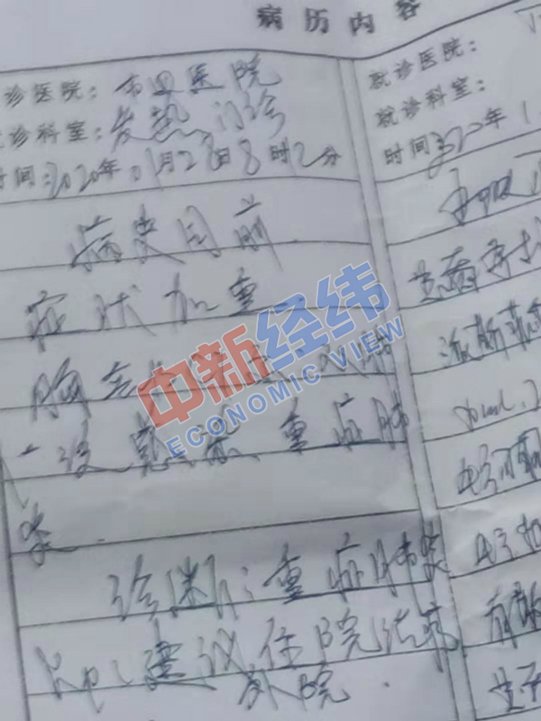 1月27日,通过核酸检测,张平被正式确诊为新型冠状病毒肺炎。1月28日,武汉市第四医院发热门诊出具的诊断证明显示,张平病症加重,双肺广泛感染、重症肺炎,建议住院治疗。
