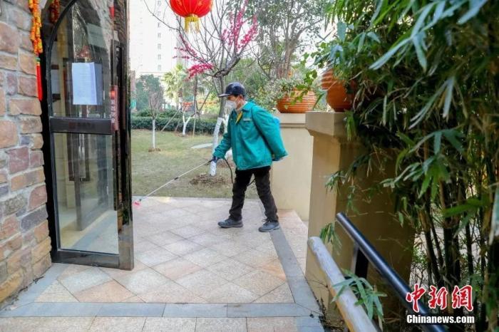 资料图:武汉市小区物业正在消毒 中新社记者 张畅 摄