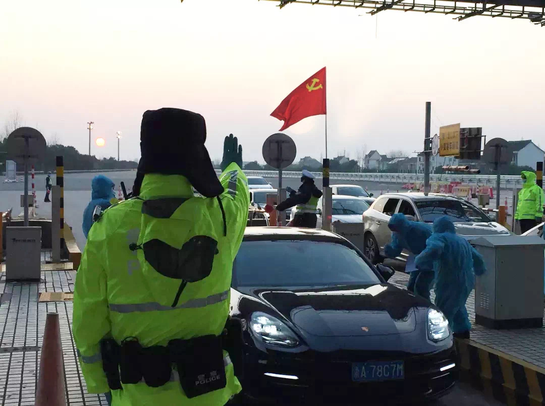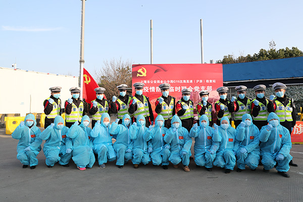 为了进一步强化省界道口的新型冠状病毒肺炎防控力量,就在1月31日下午,中共上海市金山区沈海高速(沪浙)检查站疫情防控临时联合党支部成立。首批由来自上海市公安局金山分局和区卫健委共24名党员举行宣誓仪式。
