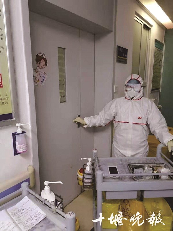 随着疫情的发展,其它科室的护士也前来支援。人员增加后,科室采取了“老带新”的三班倒制度。一个班8个小时,每班4名护士,其中两名进隔离病房,两名在外围服务,两两轮换。