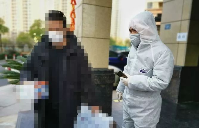 “先消毒!然后物品由我们工作人员送上去,请您站在门口就行了。”随即,工作人员用喷壶对李女士进行了消毒。
