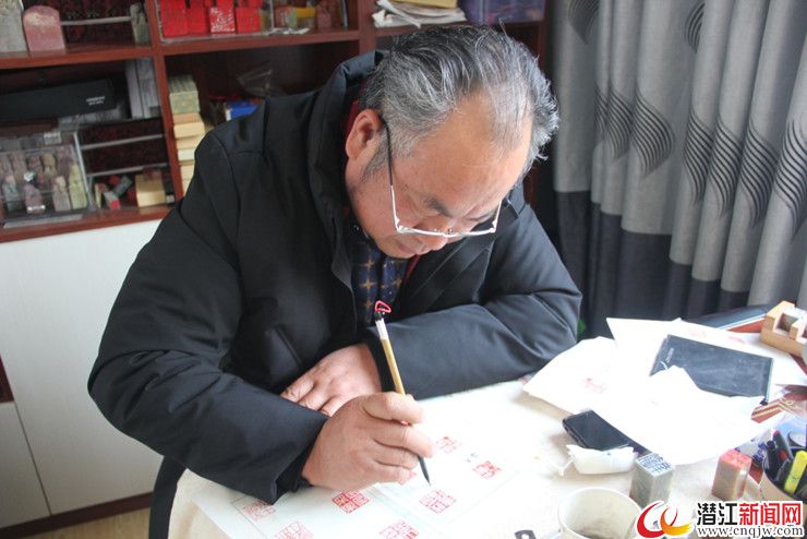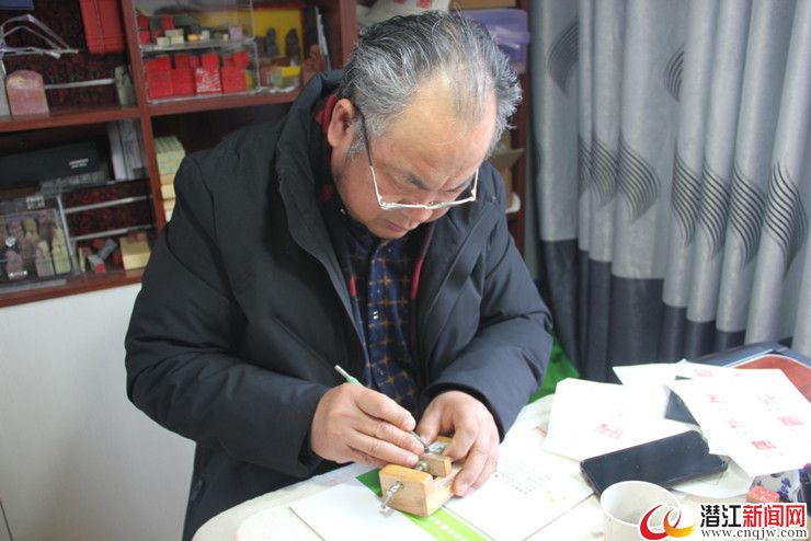 潜江新闻网讯(记者 王宇杰)2月4日,红军路休干巷58岁的雕刻艺人李佑新家中,他正端坐桌前伏案工作,用巧手和印泥篆刻出对防控疫情的心声,他创作了一个个生动的印章,既有奋战一线医护人员的名字,也有对这场没有硝烟的战场的祈福。