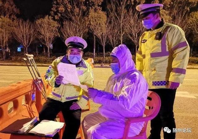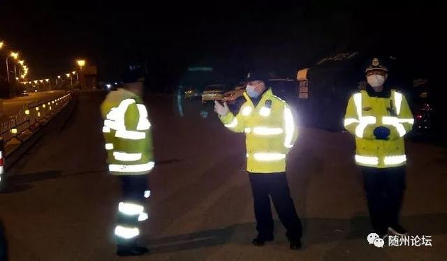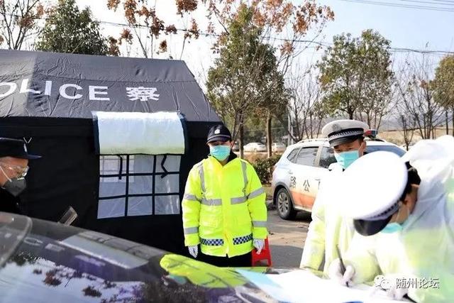 随县公安局交警大队全体民警、辅警依然坚守在一线执勤岗位,按照上级指挥部要求,联合防疫等部门在进出随县的9个主要路口设立巡控检查点,对进出随县人员、车辆进行劝返和疫情防控排查。