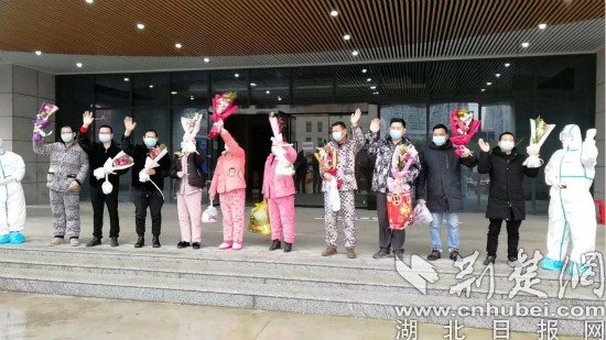 仙桃市首批治愈的11名患者集体出院(通讯员供图)