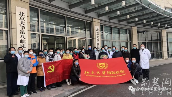 图为:北京大学国际医院援鄂医疗队出征前合影。北大医学部官微