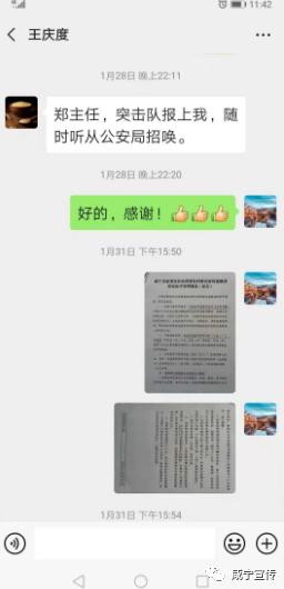 记者致电通山县公安局政治处主任郑全明,了解到,王庆度被免职后,的确一直作为普通民警在一线站岗执勤。1月28日,通山县公安局成立疫情防控党员先锋队,王庆度主动发微信请求报名参加。