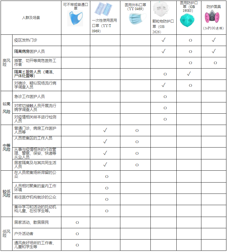 在新型冠状病毒感染的肺炎流行期间,建议选择合适的口罩类型,不过度防护。按防疫工作性质和风险等级提出以下指引: