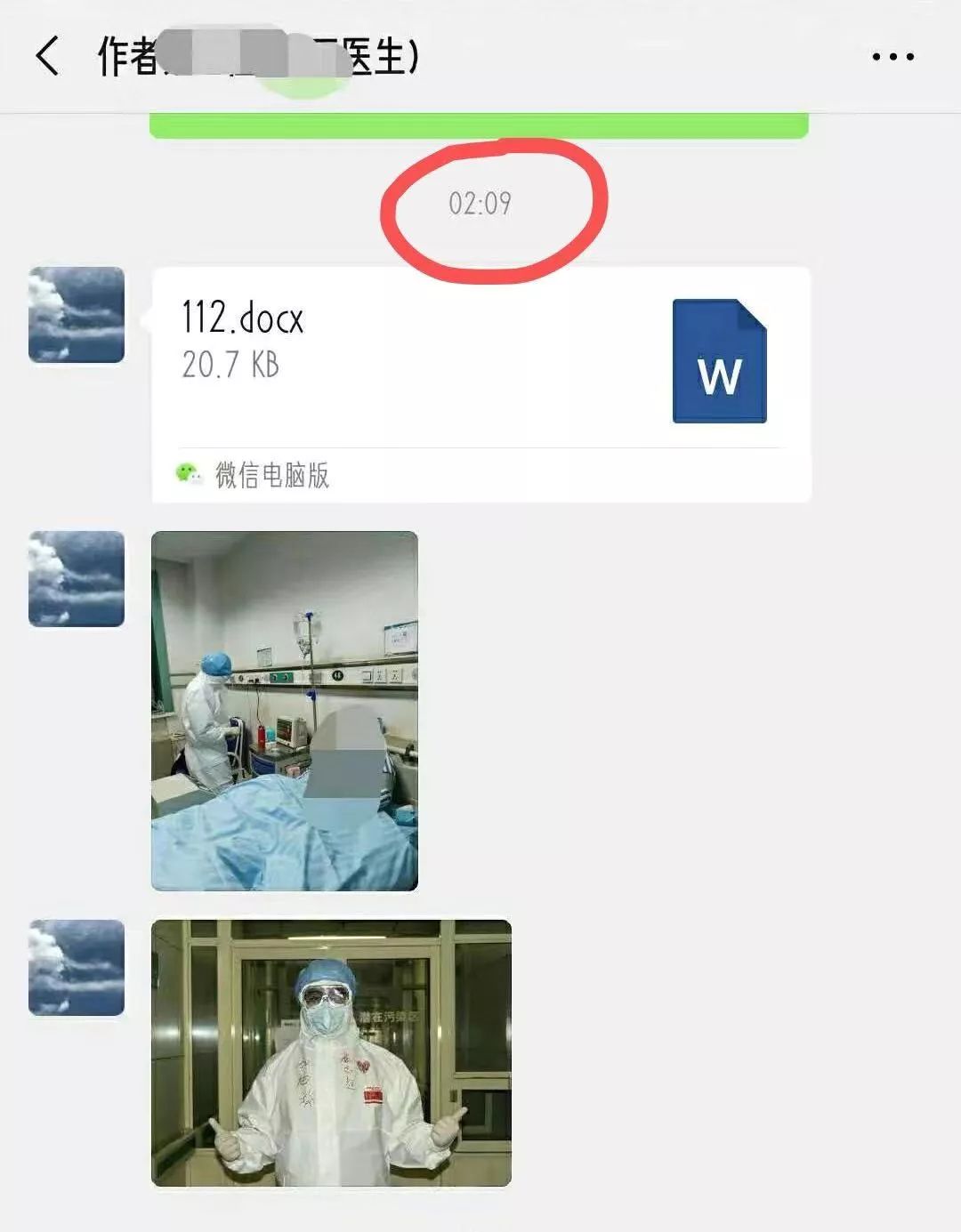 多半时候,微信那头的他们是沉默无声的。偶尔收到一两条回复的消息,时间有凌晨2点,结束了一天的防护工作,刚走出隔离病房的时候;有一大早,穿好防护服,走进病区之前。