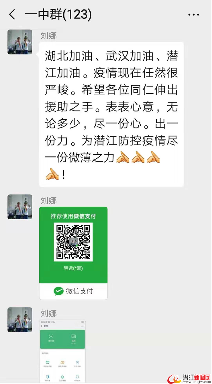来自王场小学的教师张琴捐款500元。她说:“看到战斗在一线的医生护士、人民军队冒着生命危险,为民族为国家贡献着自己的力量,作为后方的我,只想着哪怕能让她们多一些口罩和酒精”。