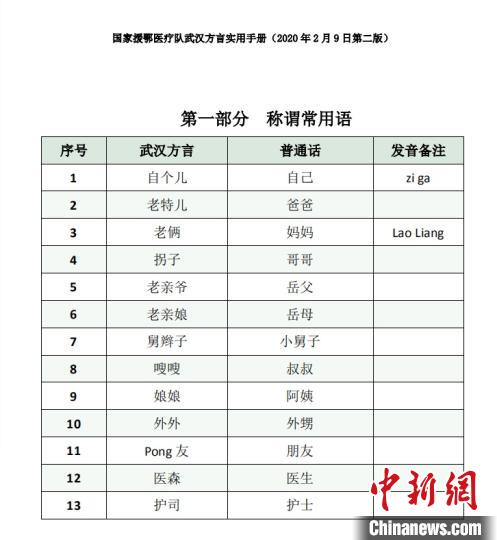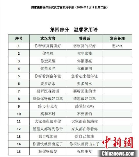 “护士好耍拉——护士好麻利”“正满——现在”“忒发麻——腿发麻”……作为疫情重灾区,中国各地支援湖北医疗队相继“白衣逆行”,但由于医疗队来自全国各地,难免存在一定的方言沟通困难,山东大学齐鲁医院支援湖北医疗队在进驻武汉48小时内,策划编写《国家援鄂医疗队武汉方言实用手册》和《国家援鄂医疗队武汉方言音频材料》,以解医疗队语言沟通之难题。