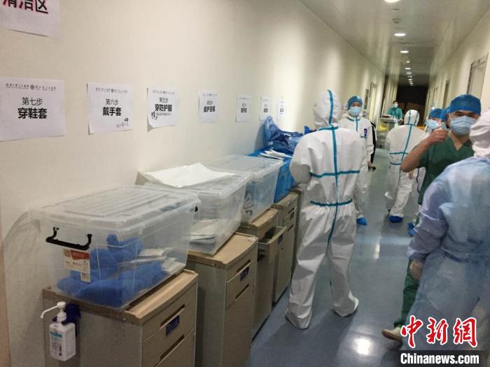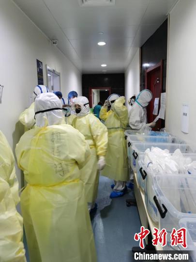 山东大学齐鲁医院医护人员有序穿戴防护服。 山东大学齐鲁医院供图