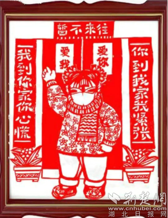 周武雄老人是仙桃市文旅局退休职工,从事剪纸创作10多年,面对严峻的疫情防控形势,他决定用剪纸画宣传防疫知识,号召人们不出门、不串门、不聚集。