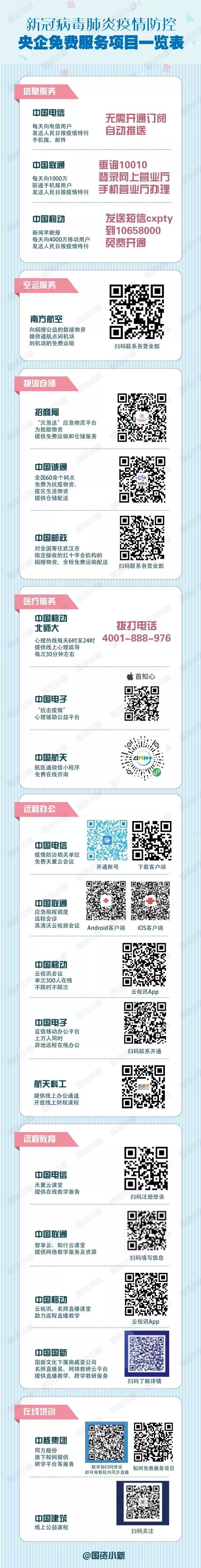 疫情防控期间,中央企业陆续推出了多项免费服务,你用上了吗?小新为你整理了一份超全的新冠肺炎疫情防控央企免费服务项目一览表下面这张图,存好,用起来!