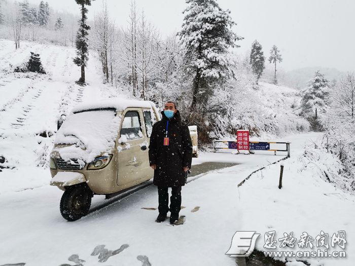 自2月14日下午以来,受强冷空气影响,鹤峰多地出现大风强降温雨雪天气。为打赢疫情防控阻击战,寒冷的天气中,党员干部、志愿者、民兵等坚守一线,在风雪中值守。