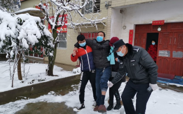 2月15日上午,广水市森林公安局民警在从扶贫村返程途中,遇见一名孕妇站在风雪中焦急求助。民警急忙上前询问得知其欲前往医院无奈打不到车时,立即驾车送她到妇幼就诊。