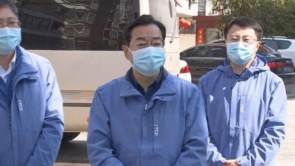 2月18日,山东省对口支援黄冈疫情防控前方指挥部指挥长杨东奇到黄冈下辖武穴市看望山东赴湖北医护队员 图片来源:武穴发布