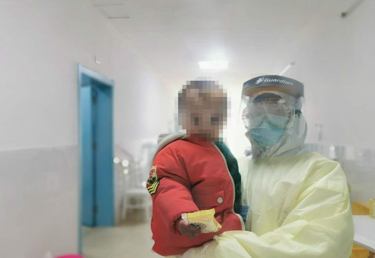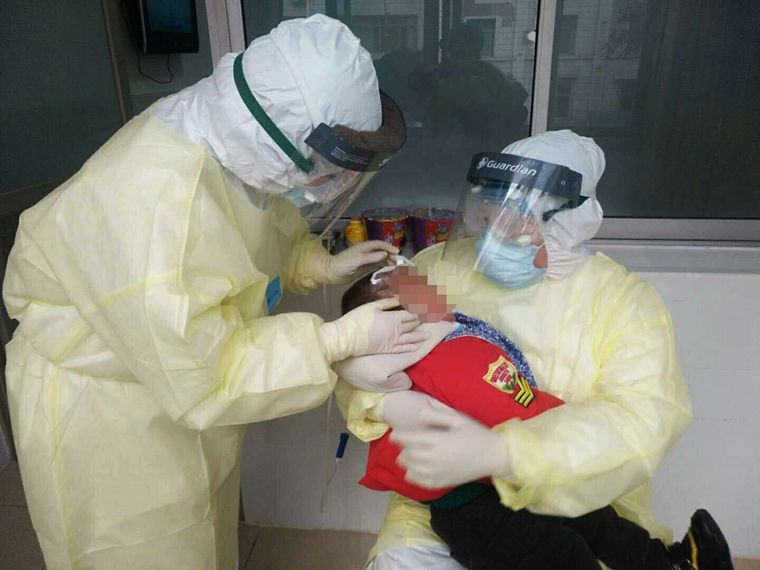 2月9日,仅1岁2个月的康康被送到恩施市中心医院东门院区,因为妈妈也是新冠肺炎患者,正在民大医院隔离治疗,第二天才能出院,其他家人被隔离观察,没有家人的陪伴,小孩哭闹不止。