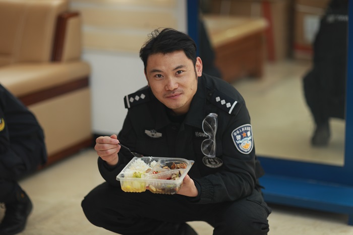 王飞回到利川市公安局食堂吃盒饭。