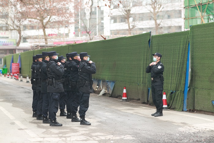 敬礼、验证、测温、登记……王飞总是乐呵呵的,无论是主动盘查,还是接受群众求助,敬礼成了他的标准动作,虽然进出医院的人员、车辆较多,但却秩序井然。2月7日,王飞带领的组调整到利川市人民医院门口执勤,主要负责医院门口及外围秩序维护、人员劝返。
