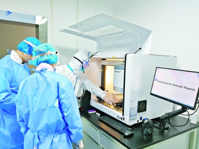 13日上午,全自动核酸检测设备在武汉市第六医院(江汉大学附属医院)正式投入使用,成为接受捐赠的10家医疗卫生机构中最早使用的医院。“单套设备可以在4个多小时内同时完成93份有效样本的检测,对患者的早诊断、早治疗起到了积极作用。”市六医院检验科主任张洪波说,以前医院使用的核酸检测设备一次性只能提取32份样本,扩增48份,检测人员人工操作感染风险较大,每天最多只能完成100多份样本检测,还有部分样本要送到武汉市疾控中心检测。全自动核酸检测设备启用之后,医院所有样本检测可全部在医院内完成,当天就能出结果。目前,每天最多可完成近300份核酸检测,随着发热病人的减少,可以完全满足医院检测需求。