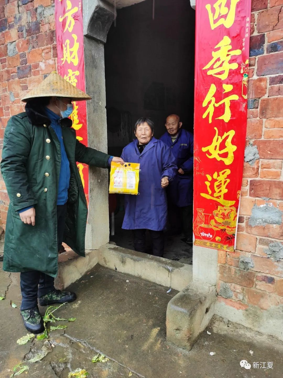 “斗笠大侠”胡世林为村民送去代购的瓜子