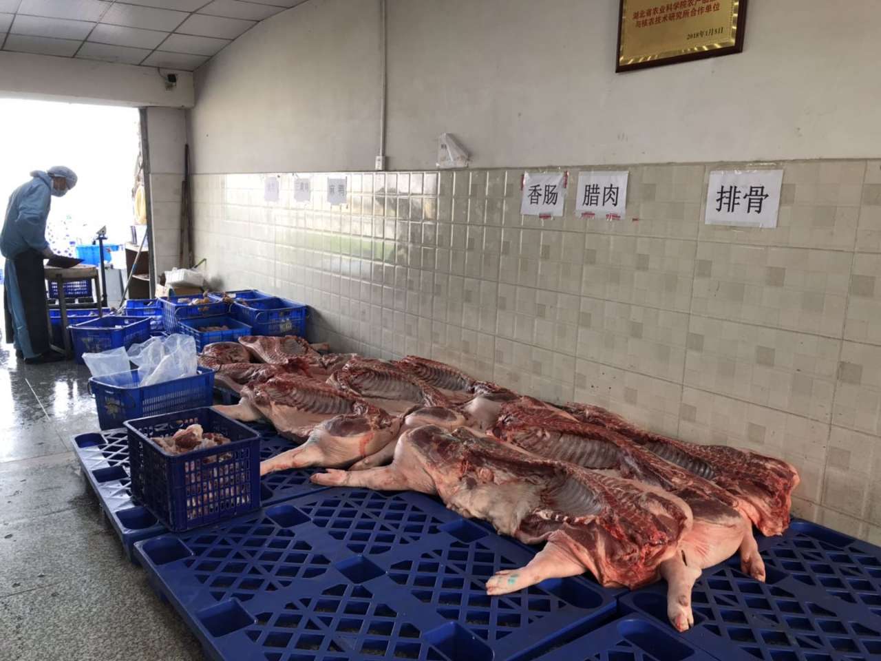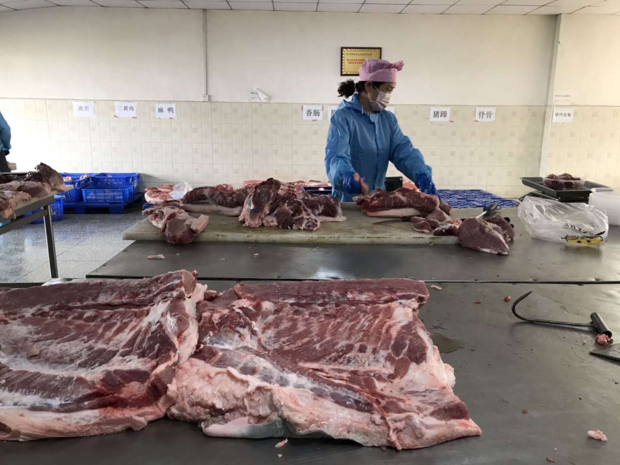 现场看到,分割好的鲜肉分类装在盒子或者袋子里,三黄鸡也已去毛洗净。博裕公司董事长黄文博说,“猪肉、鸡肉每天现杀,猪肉都来自长信屠宰厂,确保产品优质新鲜。”据了解,作为随州定点屠宰厂,长信每天根据前一天全市各商超和电商平台统计的数量进行屠宰,确保当天屠宰当天销售完,目前每天约向随州市场供应400头的新鲜猪肉。