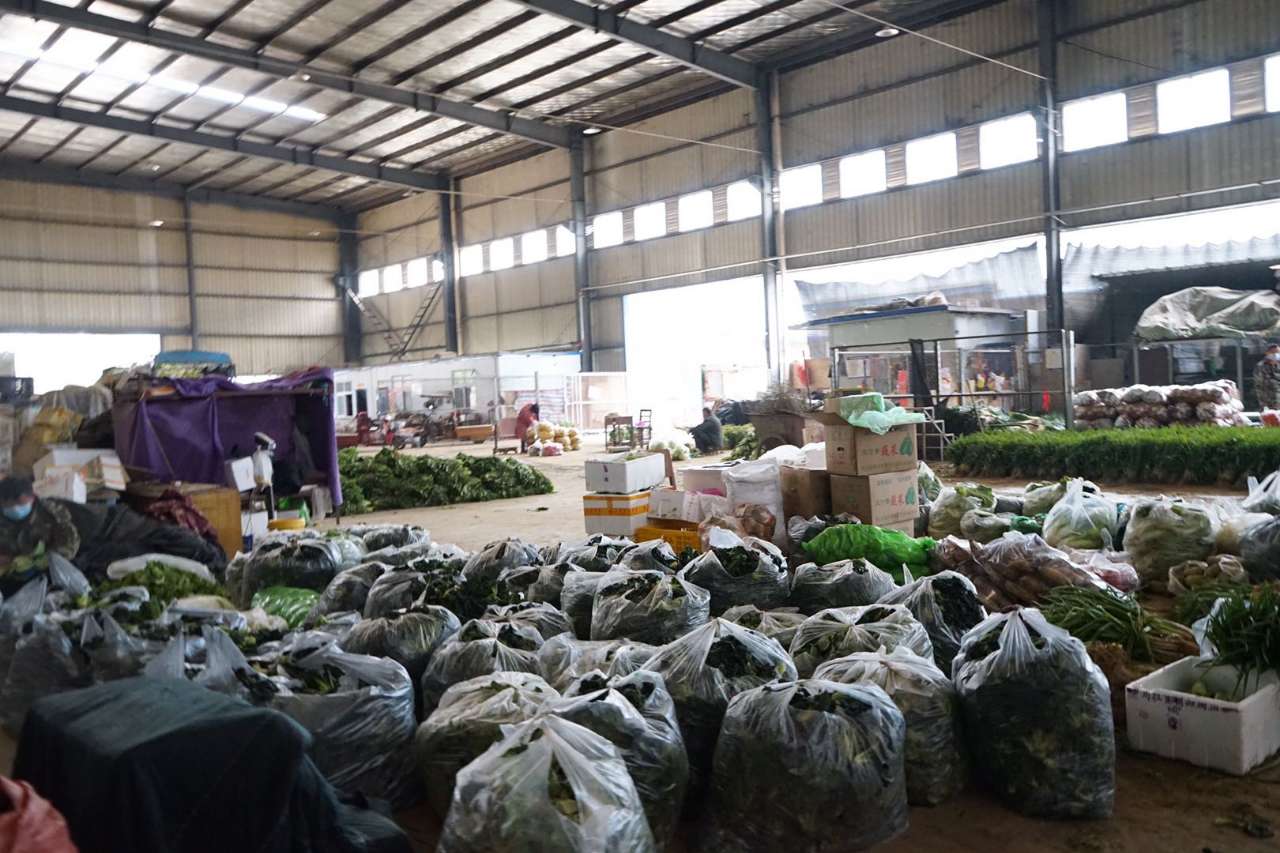 白沙洲物流园:物资储备充足,每天销售蔬果粮油500吨左右