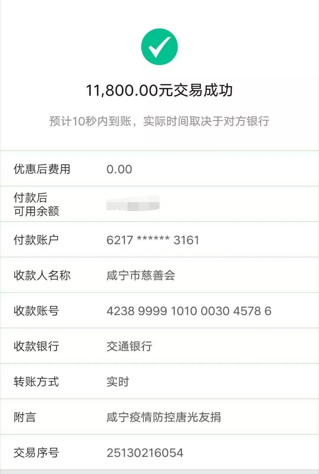 ▲捐款转账截图