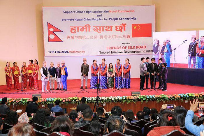 在尼泊尔跨喜马拉雅发展中心举办的“支持中国抗击疫情,促进中尼民心相通”活动中,为声援中国抗击新冠肺炎疫情,尼泊尔知名艺术家巴拉腊姆·达哈尔和马诺斯·甘朱莱尔分别创作并朗诵诗歌《我们在一起》和《来自佛祖故里的祝福:中国不能则谁能》。部分尼泊尔小学生为支持中国抗击疫情创作了许多绘画作品,并在活动中表演了由尼友人填词作曲的尼中双语歌曲《当你痛苦的时候》:“我受难时,你为我负重前行;你战‘疫’时,我也愿与你并肩战斗!”“阴霾总会过去,春天必将到来;让我为你祈福,祝你平安!”这些情感真挚的表演让在场者深受感动。