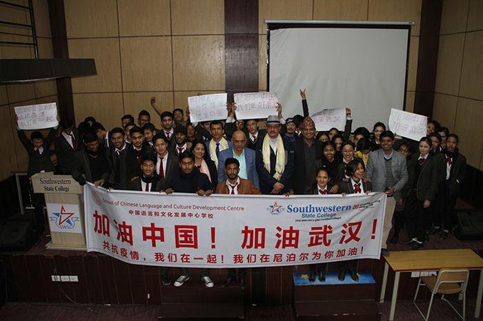 新型冠状病毒肺炎疫情的爆发,牵动着许多关心和热爱中国的尼泊尔朋友的心,他们时刻关注着疫情变化和中国的防控进展。近日,尼泊尔驻华大使鲍德尔携全体馆员在北京为武汉加油,在尼泊尔的阿尼哥协会成员、加德满都大学孔子学院师生等尼各界友好人士也自发拍摄视频声援武汉,纷纷喊出“中国加油,武汉加油”“中国武汉加油,你能行,我们和你在一起”等口号,为中国加油打气。博克拉的民众举行烛光守夜为中国祈祷,场面感人。