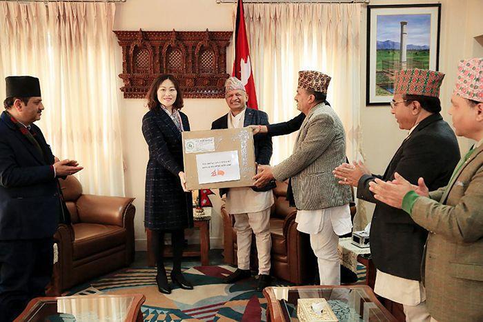 为支援中国打赢新型冠状病毒肺炎疫情防控阻击战,2月7日,尼泊尔政府紧急向湖北武汉捐赠口罩10万只。捐赠仪式在尼泊尔外交部举行,中国驻尼泊尔大使侯艳琪出席并致辞。尼泊尔外交部长贾瓦利、卫生与人口部长达卡尔等政府官员出席。