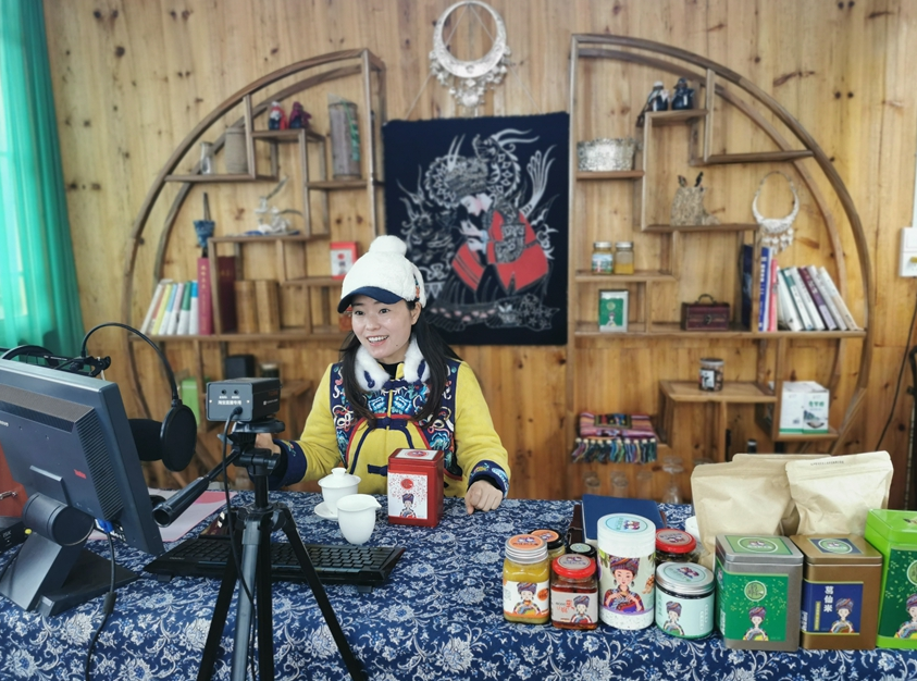 今年31岁的龙艳平是村里有名网红主播,从2019年才开始进入这行,主要通过直播平台销售当地的农副产品,货真价实的土特产、出色的语言表达能力、良好的服务态度,让她村里的主播达人,现有淘宝、微信粉丝1 万多人,2019年销售额达到200多万元。