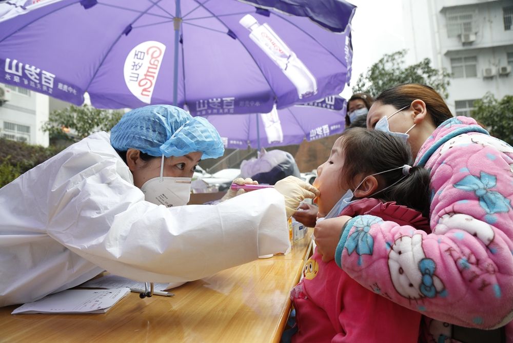 六角亭街道办事处解放路社区,医务人员为小朋友诊疗。