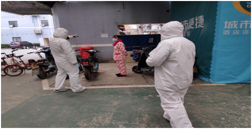 随着工作的不断推进,蒋林所在的小组分工也逐渐固定,在离洪珞小区300米远的位置——武珞路692号,有两栋斜对着中部战区总医院的居民楼和一个城市快捷酒店,居住着40余户小区居民和100多位中部战区总医院的医护人员。蒋林所在小组的主要任务就是24小时值守这里,负责附近居民生活物资的购买。