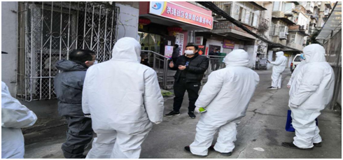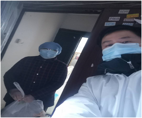 就这样,蒋林和另外两名同事一起积极投身到社区各项防疫事务中去,入户排查、24小时值守小区路口、协调附近商超帮助居民买菜送菜、配合社区对居民楼进行消毒消杀、义务为医护人员家属运送生活物资……每项工作都很琐碎,一天结束后往往疲累不堪,但当社区工作人员对他们竖起大拇指,社区老百姓见到他们露出信任的笑容时,蒋林感觉一切都值得。