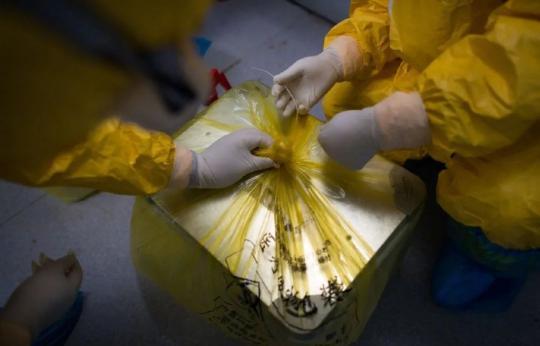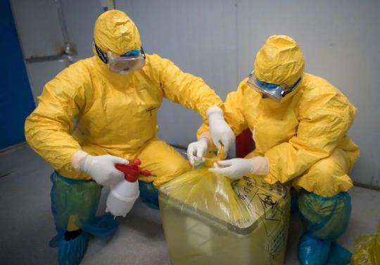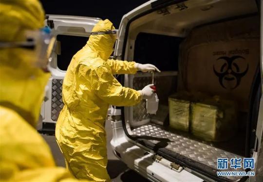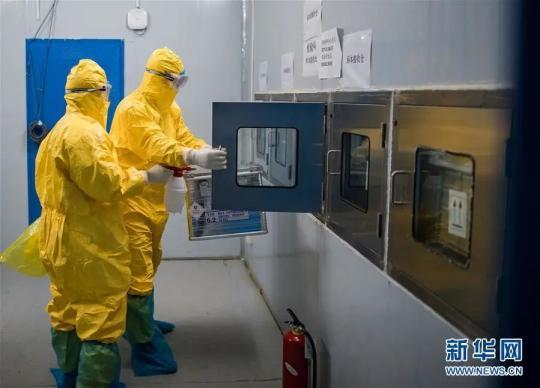 △刘森波在武汉雷神山医院检验科收取病毒样本