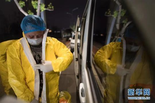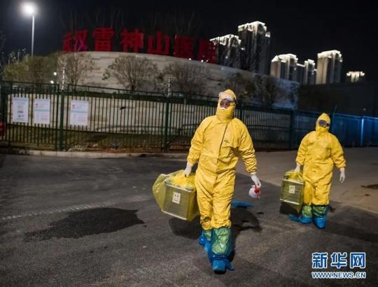 △刘森波到达武汉雷神山医院,准备开始运送工作