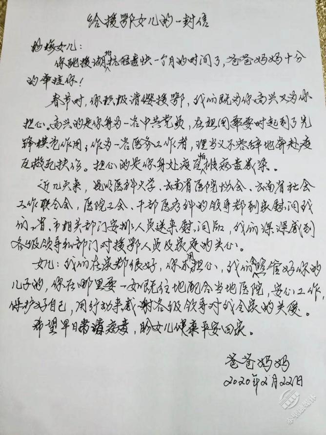 2月22日,离开家27天的杨梅收到了父亲的来信。