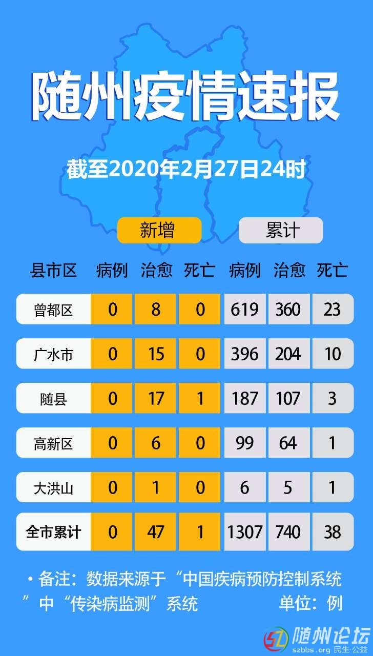 【权威发布】随州疫情速报(截至2020年2月27日24时)