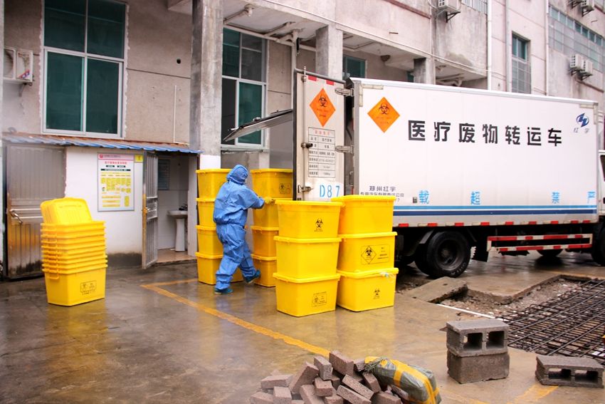 2.27日下午,传染病隔离二区保洁员徐红云,正在进行每天一次的涉疫医疗废物转运工作。(摄影郭玉珍)