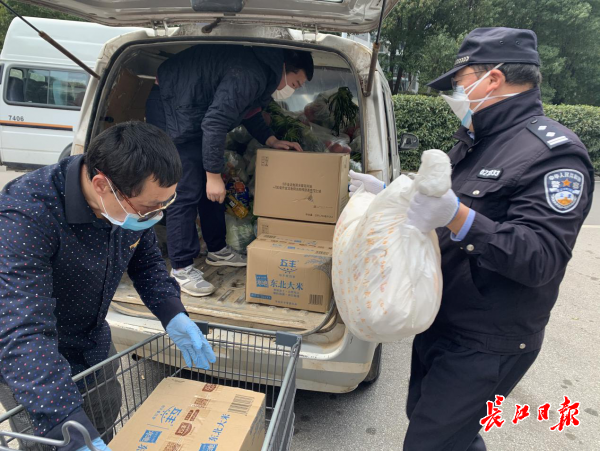 27日中午,社区民警韩朝东像往常一样,开车帮社区运货、卸货,798份套餐几乎是平时的3倍,他来回跑了多趟才运完。