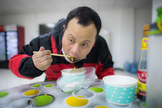 2月24日,刘森波在实验室食堂吃晚饭。