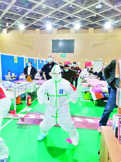 医生黄莎莎在方舱医院带领患者做运动 本人供图