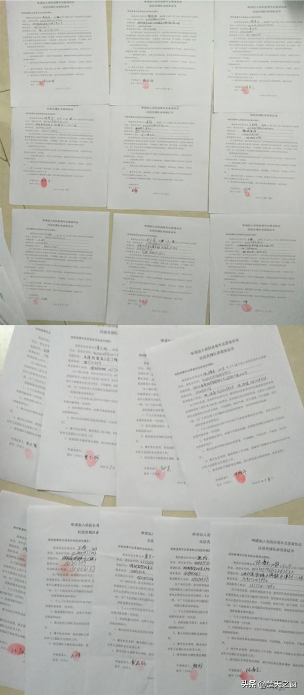 万一感染了病毒怎么办?早在成立崇阳县青年志愿者协会抗疫先锋队时,沈增平就第一个带头和队员们一起签下了承诺保证书“个人知悉所有风险和自愿承担一切责任,抗疫值勤过程中,如果不幸感染病毒,积极接受和配合政府部门及医院的隔离和治疗;服从抗疫先锋队党组织的领导,不怕牺牲......”并按下了一个个鲜红的手印。