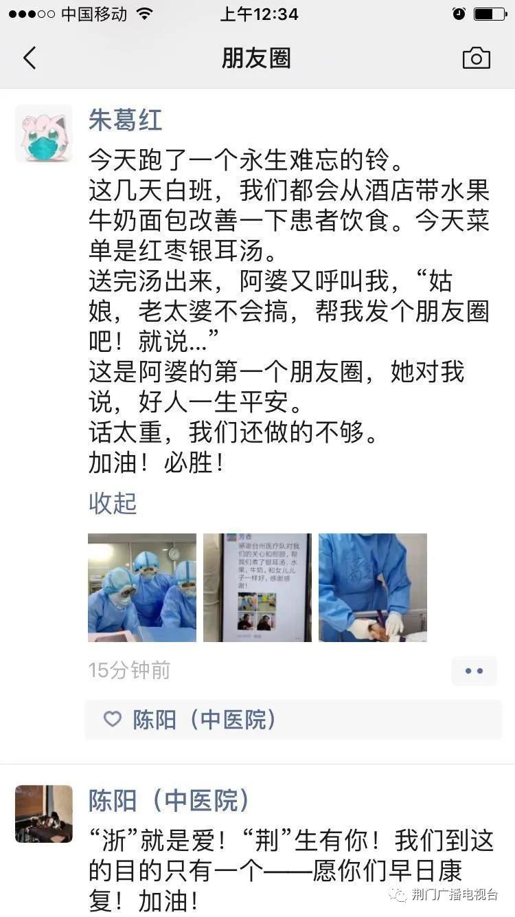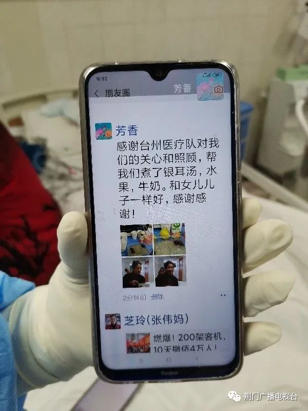 3月2日,荆门一医台州ICU内,一位重症患者有感而发,在医护的帮助下发出了自己人生的第一条微信朋友圈。