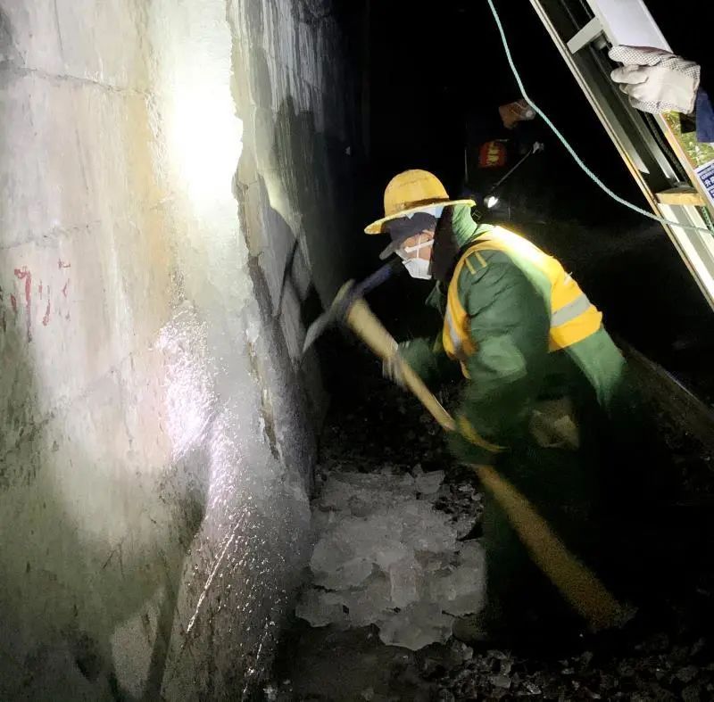 原来,疫情发生后,打冰班组12名队员中有4名被隔离观察,剩下的8名队员中需要4名盯控列车运行,现场干活的只有4人,再加上节后气温有所下降,他们管辖的42座隧道内结冰的处所又比平日增加了不少。人少活多,他们就换着来、抢着干。